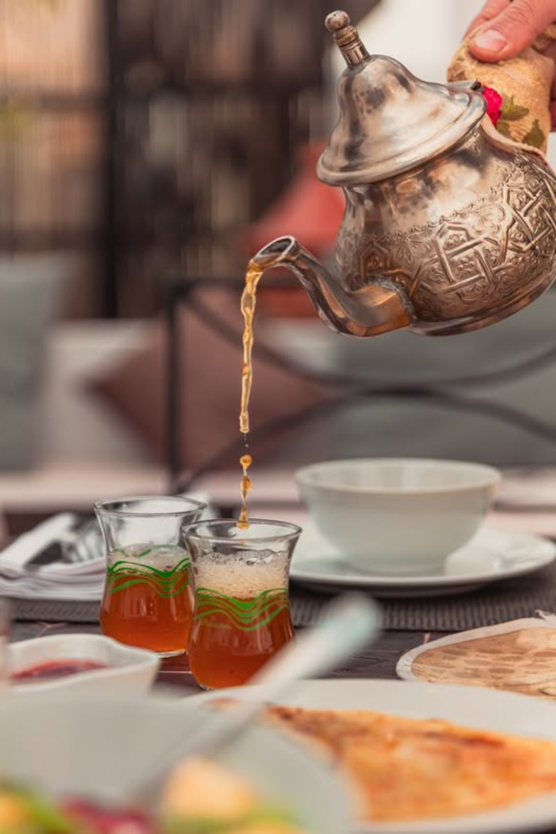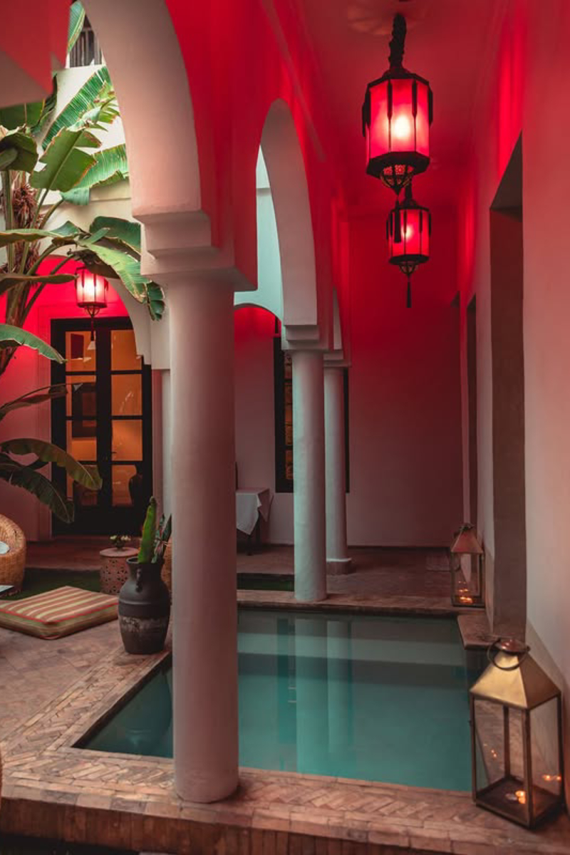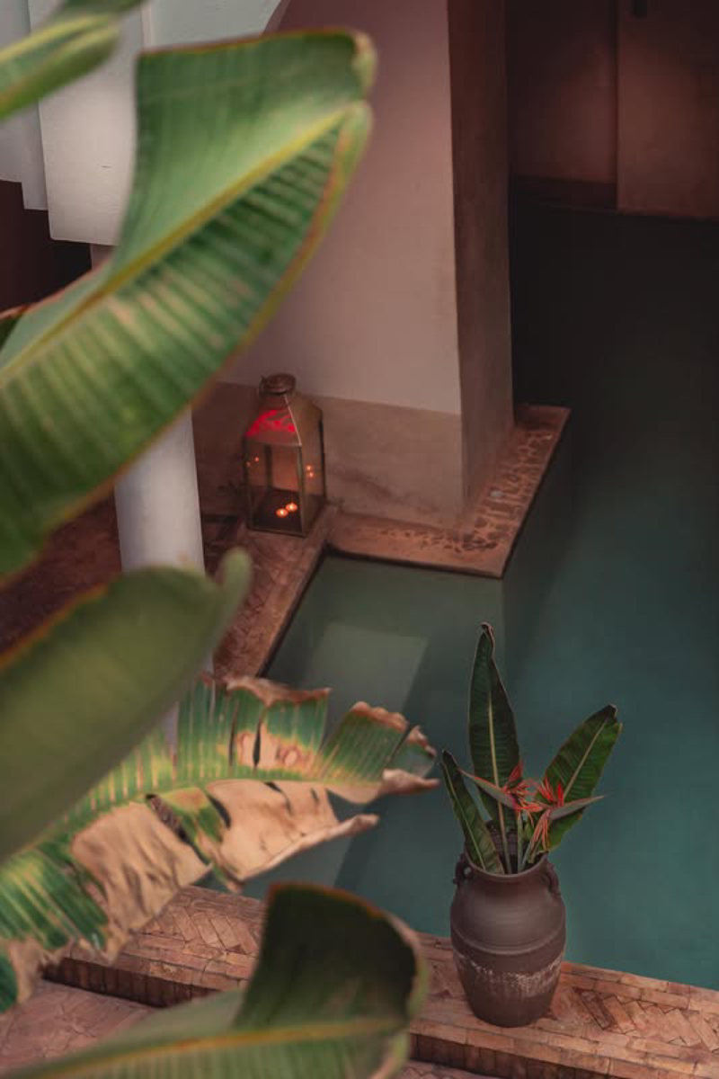 A calming open-air space to relax and enjoy the riad’s atmosphere.